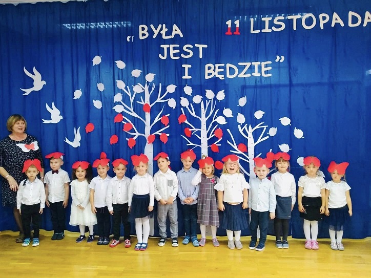 Z tej okazji przedszkolaki przyszły ubrane na galowo i uroczyście świętowały ten wyjątkowy dla Polski dzień.