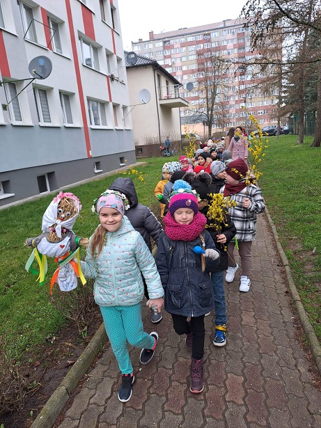 21 marca to jeden z tych dni, na który dzieci i wszyscy dorośli w naszym przedszkolu czekają z wielką niecierpliwością. Po długiej zimie chcemy ciepła, zielonych drzew, śpiewu ptaków i kwiatów. Tego dnia wybraliśmy się na spacer, aby przywitać wiosnę. Dzieci odnalazły wiele jej oznak. Przedszkolaki zauważyły pierwsze wiosenne kwiaty: przebiśniegi, krokusy, bratki. Na krzewach róż i forsycji dzieci ujrzały pierwsze pąki. W oddali usłyszały śpiew ptaków przemieszczających się wśród gałęzi drzew. Dzieci mają już pewność, że wiosna nadeszła.