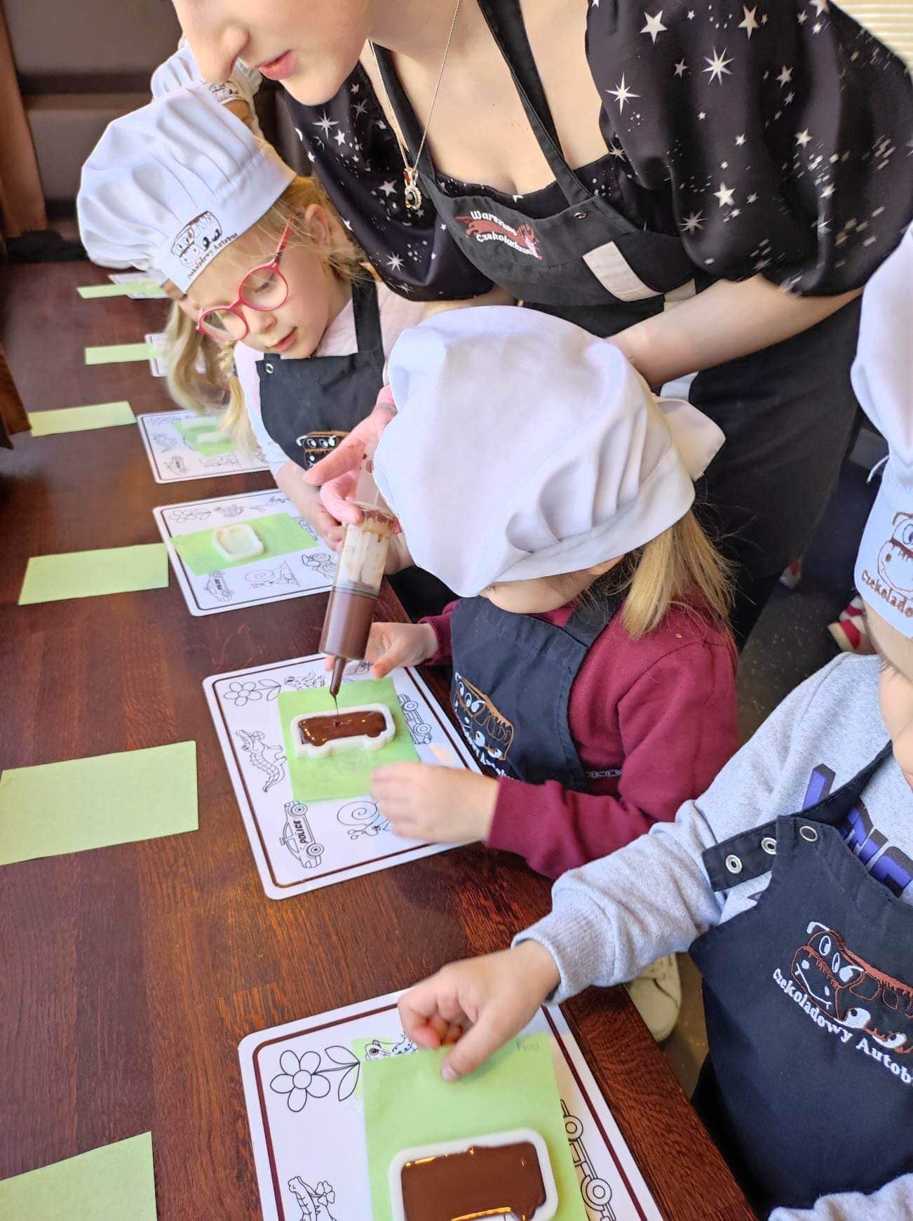Czekoladowe warsztaty - edukacja poprzez zabawę! Podczas spotkania w Czekoladowym Autobusie dzieci poznały historię czekolady, techniki jej przygotowania oraz możliwości wykorzystania. Dowiedziały się również jak odróżnić czekoladę od produktów czekoladopodobnych oraz kiedy i w jakich ilościach można pozwolić sobie na słodycze.