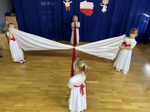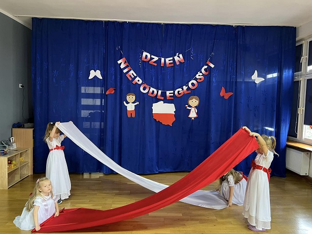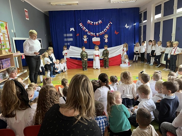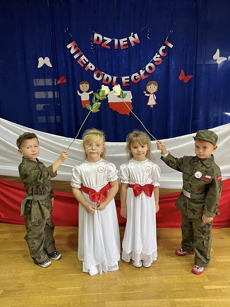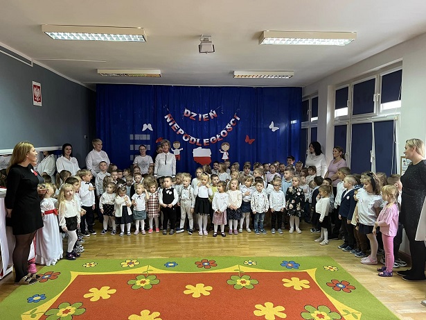 Narodowe Święto Niepodległości to wyjątkowy czas dla każdej Polki i Polaka. Z tej okazji dzieci z wszystkich grup oraz pracownicy przedszkola zebrali się, aby uroczyście świętować ten wyjątkowy dla Polaków czas. Grupa "Biedronek" zaprezentowała improwizację muzyczno - taneczną "Rozkwitały pąki białych róż", grupa "Skrzatów" piosenki patriotyczne. Wszyscy odśpiewali także hymn państwowy „Mazurek Dąbrowskiego” pamiętając przy tym o zachowaniu należytej postawy.