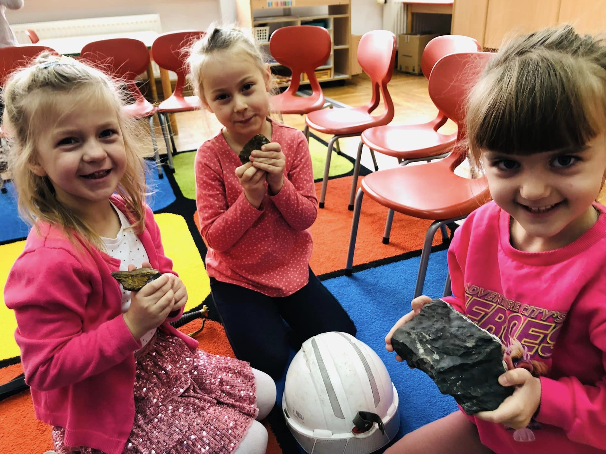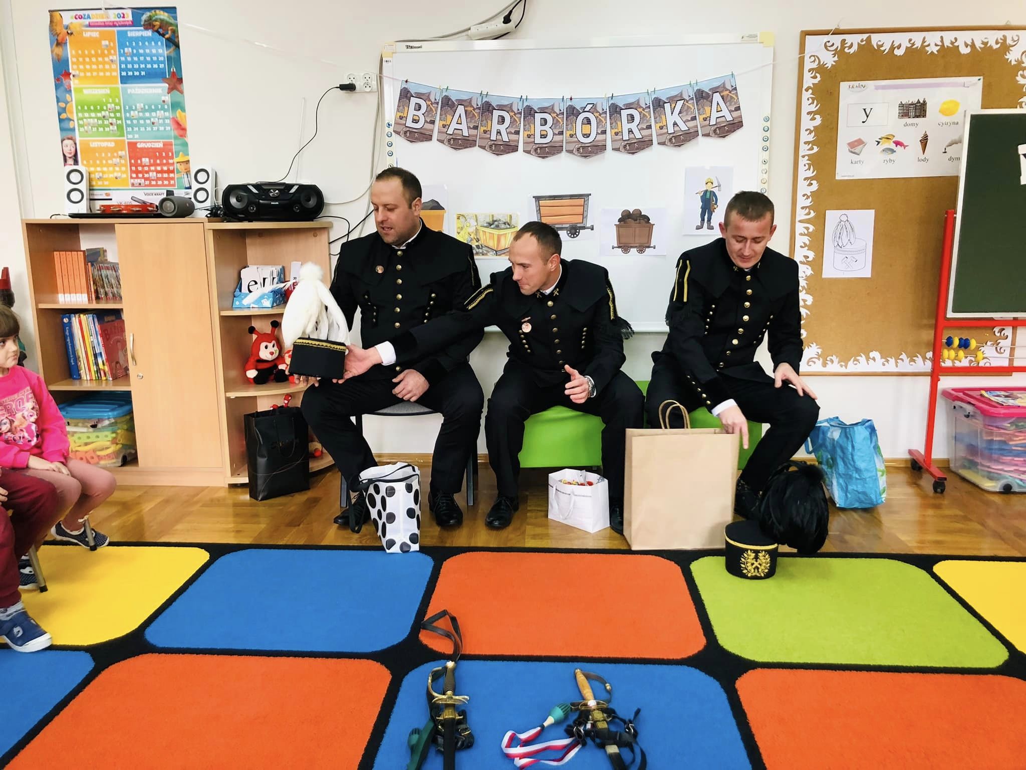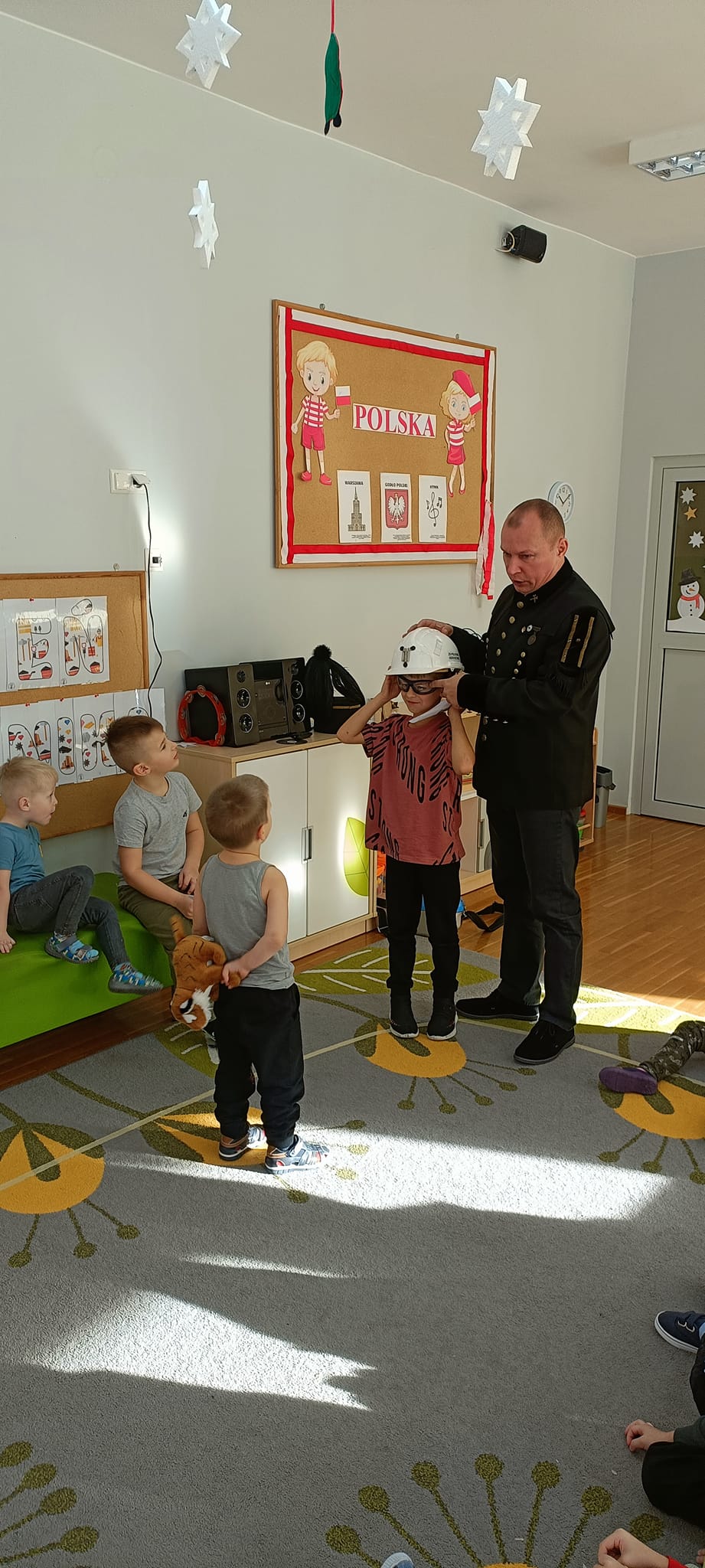 Panowie opowiedzieli na czym polega ich praca, omówili elementy stroju górniczego i ich symbolikę. Wyjaśnili, że praca górnika jest ciężka i niebezpieczna, ale potrzebna. Zaprezentowali zdjęcia maszyn i urządzeń, które służą im w pracy. Opowiedzieli również o niektórych tradycjach związanych z zawodem górnika. Dzieci dostały mnóstwo prezentów od naszych wspaniałych gości.