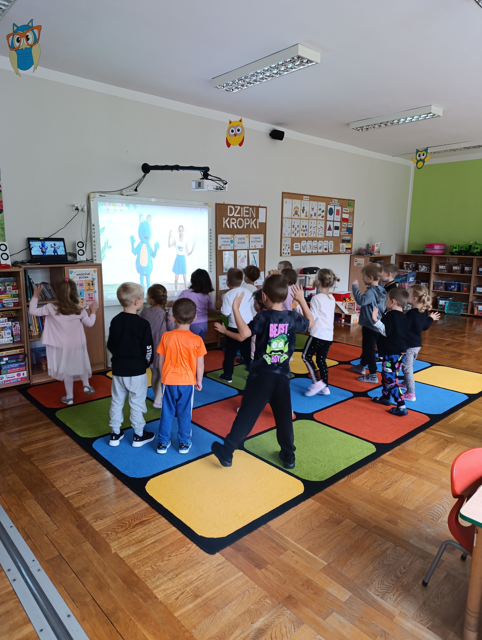 Dzień Kropki jest to dzień odwagi i zabawy. Tego dnia nasze "Biedronki" wypełnione były kolorowymi kropkami. Na zajęciach poznały genezę tego święta. Dzieci uważnie wysłuchały opowiadania, jak to zwyczajna kropka zmieniła świat małej dziewczynki o imieniu Vashti. Historia ta uświadomiła przedszkolakom, że każdy z nas ma jakieś ukryte zdolności, TALENT.Tego dnia również dostrzegaliśmy kropki tam, gdzie wcześniej nikt na nie nie zwracał uwagi. Okazało się, że kropki towarzyszą nam w naszym codziennym życiu.