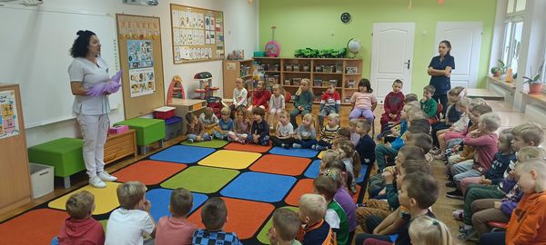 W związku z Międzynarodowym Dniem Lekarza zaprosiliśmy do naszego przedszkola panią stomatolog Kamilę Samulską - Łażewską. Pani Kamila opowiedziała dzieciom o zawodzie dentysty. Mamy nadzieję, że od tej pory już nikt z przedszkolaków nie będzie bał się wizyty u stomatologa. Dziękujemy naszemu gościowi za wizytę w naszym przedszkolu i poświęcony nam czas.![]()