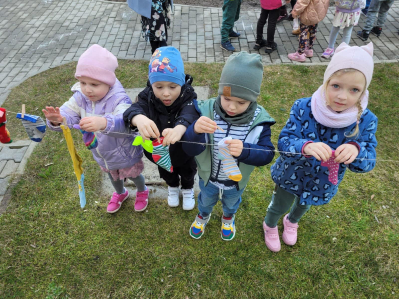 Kolorowe skarpetki to symbol solidaryzowania się z osobami, które urodziły się z Zespołem Downa. Na całym świecie 21 marca obchodzony jest ten dzień. W naszym przedszkolu dzieci oglądały i opowiadały o swoich skarpetkach, uważnie wysłuchały co to jest za dzień i dlaczego jest obchodzony, bawiły się kolorami. W ramach solidarności przedszkolaki zawiesiły przed przedszkolem kolorową skarpetkę