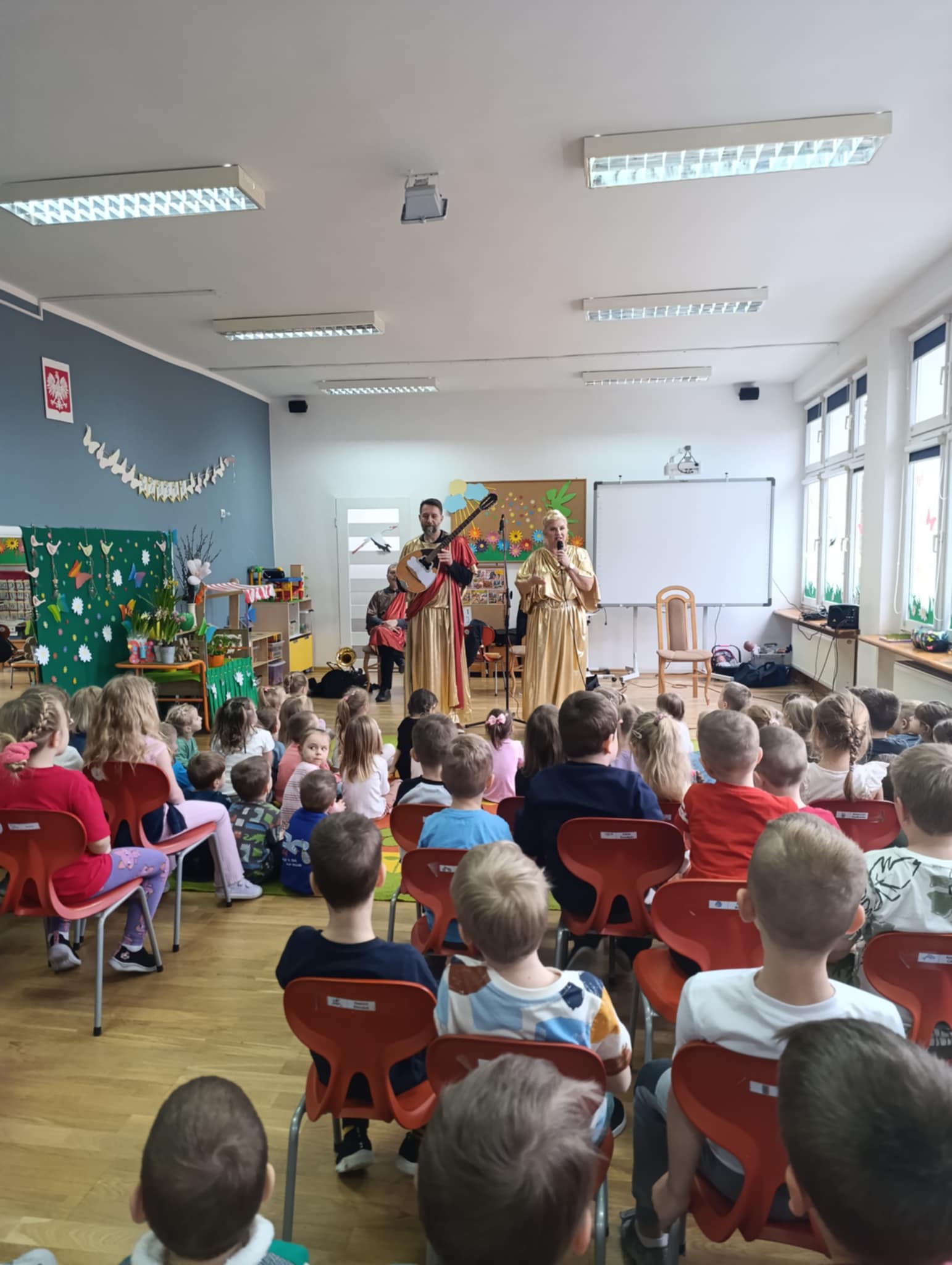 W ramach spotkań muzycznych ,,W krainie Pani Muzyki" dziś w naszym przedszkolu odbył się koncert muzyczny pt.,,Tam gdzie morze styka się z górami zorganizowanym przez Lubuskie Biuro Koncertowe ,,Orfeusz".