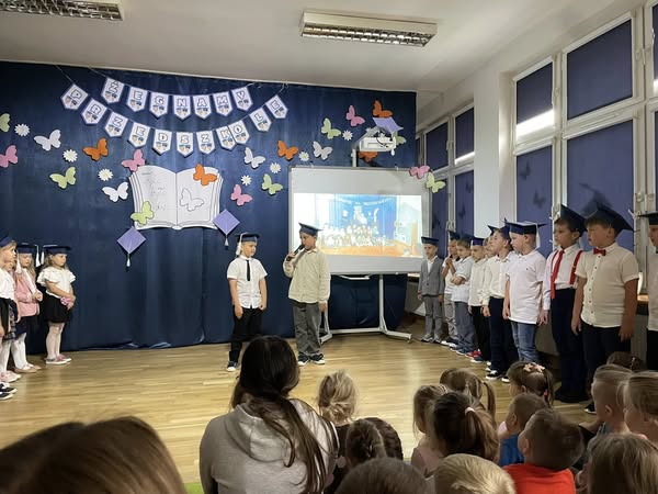 W czwartek 12 czerwca w naszym przedszkolu odbyło się Uroczyste Pożegnanie Przedszkola. Dla starszaków było to szczególnie wyjątkowe pożegnanie, gdyż to oni po opuszczeniu przedszkolnych murów rozpoczną naukę w klasie pierwszej. Najpierw swój występ zaprezentowały sześciolatki. Poprzez wiersze, piosenki oraz tańce wyraziły swoją wdzięczność i podziękowanie wszystkim nauczycielom, rodzicom oraz pracownikom przedszkola za trud włożony w wychowanie i opiekę, za wspaniałe i wspólne lata pobytu w przedszkolu. Dzieci z młodszej grupy Biedronki na pożegnanie starszych kolegów i koleżanek zaśpiewały dla nich piosenkę i wręczyły im przygotowane upominki. Po części artystycznej Pani Dyrektor podziękowała dzieciom za piękne występy i życzyła sukcesów na dalszym szczeblu edukacji. Nie zabrakło również podziękowań dla nauczycieli, pracowników przedszkola oraz rodziców za współpracę i wszelkie działania wspierające nasze przedszkole. Wszystkim życzymy dużo słońca i udanego wypoczynku.