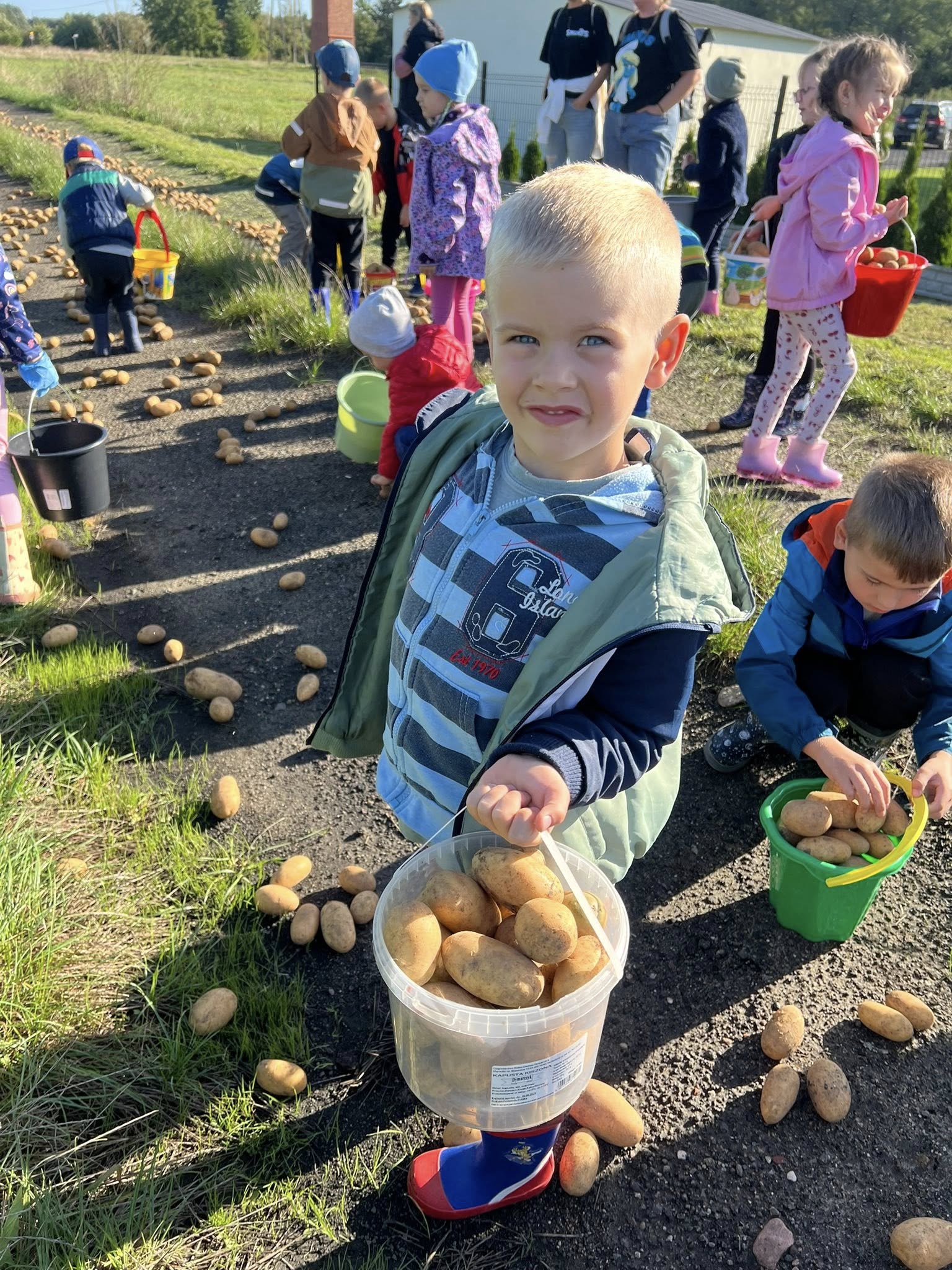 Dzieci z grup ,, Smerfy” i ,,Biedronki” z zapałem zbierały ziemniaki, oglądały maszyny rolnicze i poznawały życie na wsi. Nie zabrakło też smakołyków – kiełbasek z grilla i pieczonych ziemniaków z ogniska.