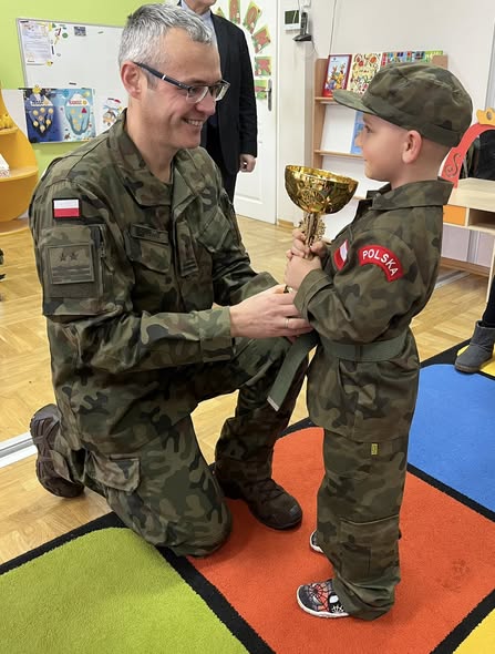 Grupy Biedronki i Skrzaty odwiedzili żołnierze m.in ppłk Mieczysław Owczarz szef WCR Głogów, którzy specjalnie przyjechali, aby ponownie uhonorować nasze przedszkolaki. Towarzyszył im również sam organizator – dyrektor Zespół Szkół Ekonomicznych im. Jana Pawła II w Głogowie Wojciech Janisio. Przypomnijmy, że podczas Regionalnego Festiwalu Piosenki Patriotycznej „Vivat Polonia” dzieci zdobyły
