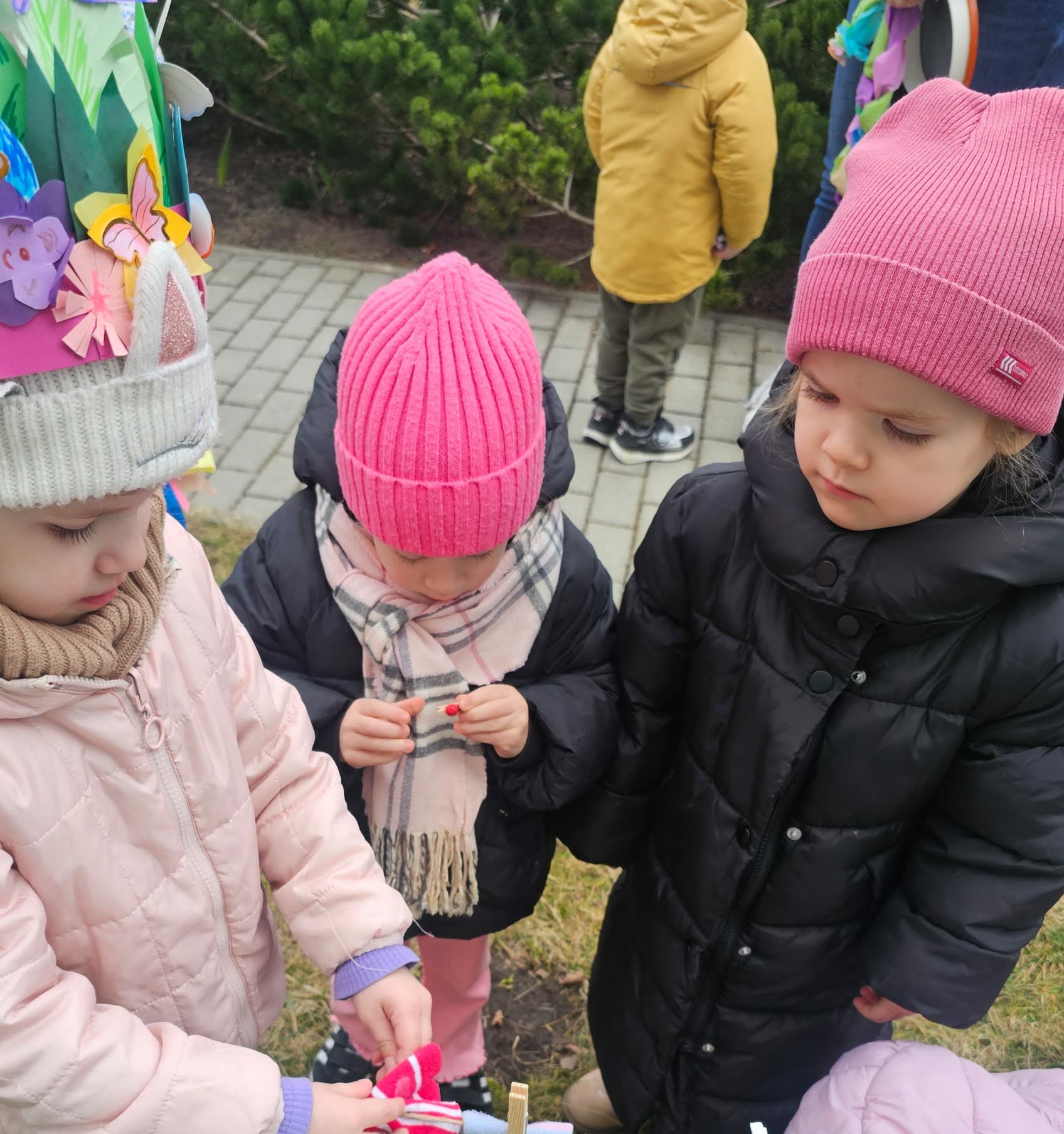 Grupa starsza wybrała się w okolice amfiteatru, a przed przedszkolem dzieci wspólnie wywiesiły kolorowe skarpetki