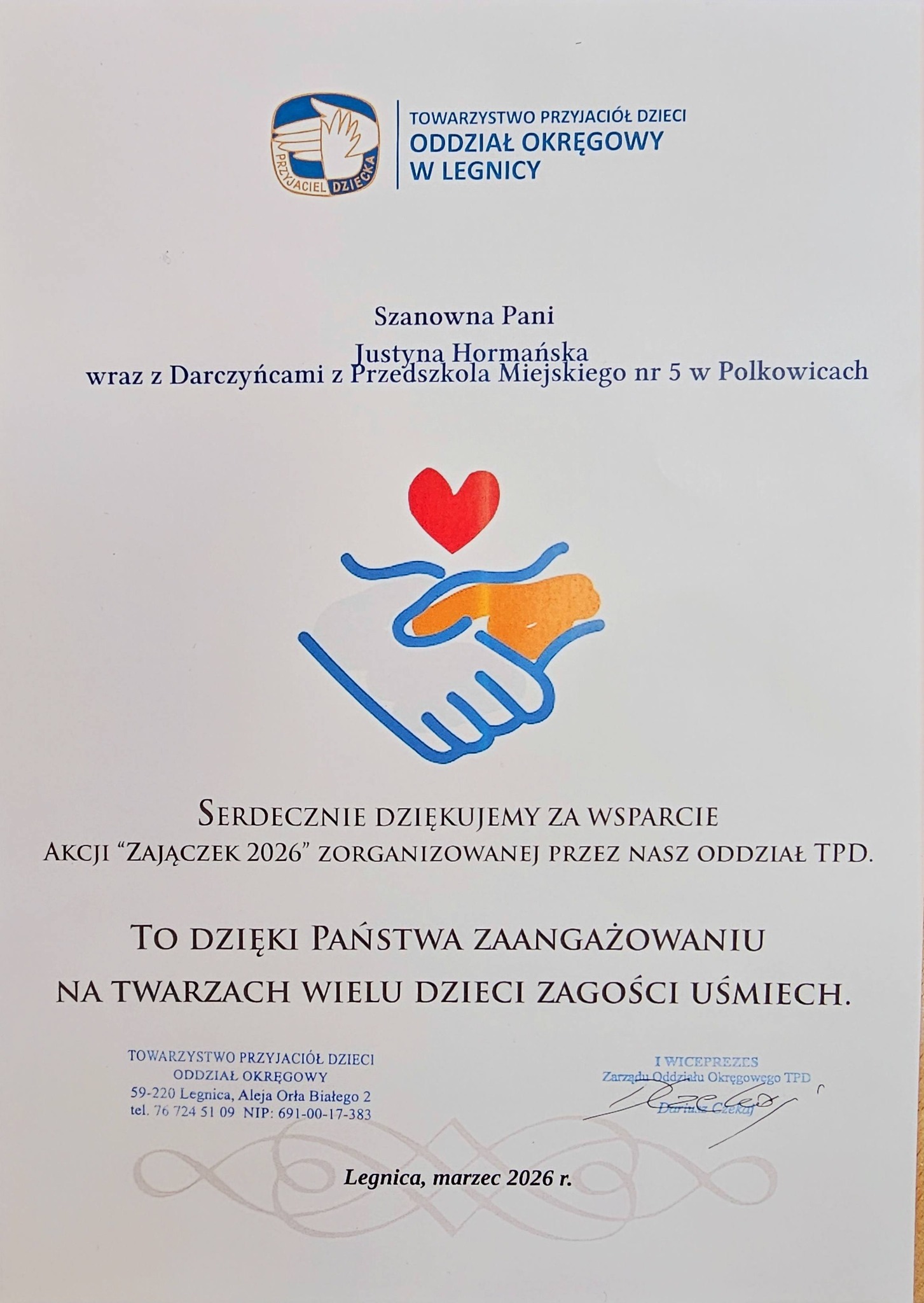 Z całego serca dziękujemy wszystkim Darczyńcom, którzy włączyli się w akcję „Zajączek 2026” ![]()