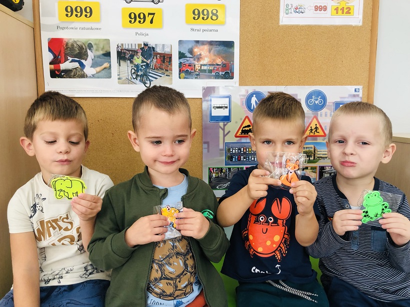 W dniu 23.09.2022r w naszym przedszkolu gościliśmy pracowników ze Straży Miejskiej w Polkowicach. Podczas spotkania dzieci zapoznały się z pracą strażnika miejskiego oraz oglądały elementy umundurowania. Przedszkolaki miały okazję wykazać się wiedzą na temat znajomości bezpieczeństwa na drodze oraz funkcji sygnalizacji świetlnej. Spotkanie odbyło się w miłej atmosferze z aktywnym udziałem dzieci. Dzieci otrzymały od strażników miejskich kolorowe odblaski.