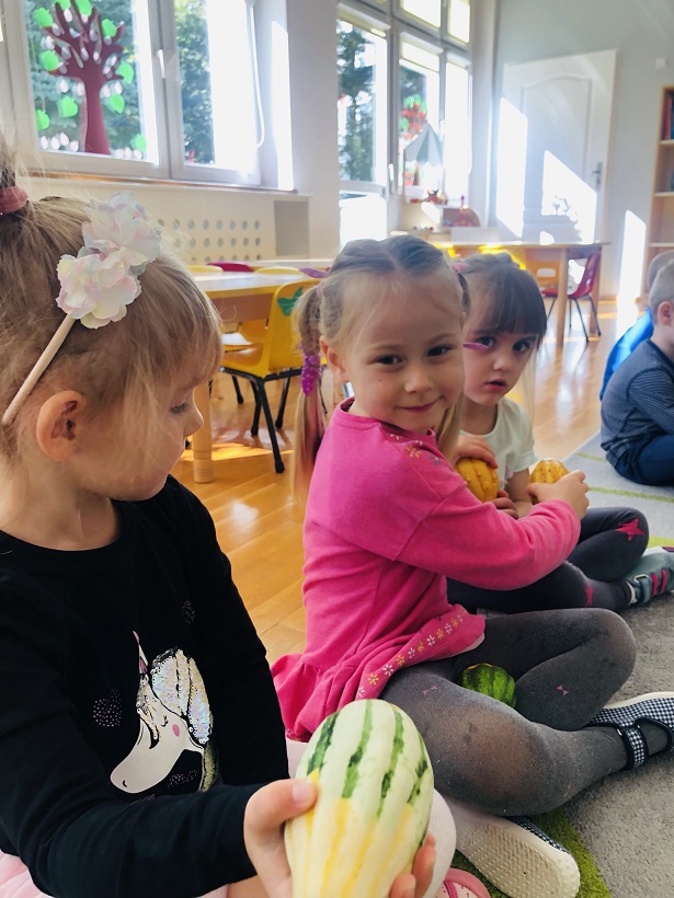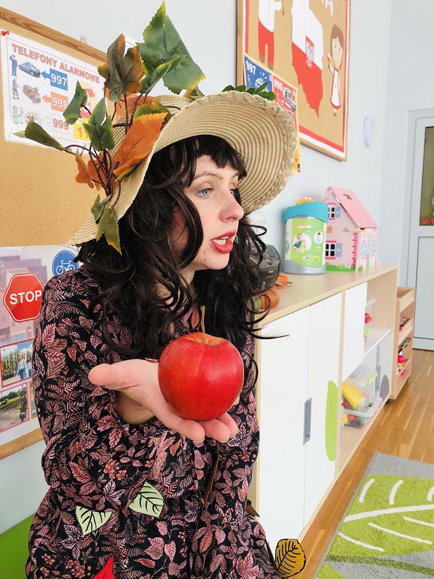 Dnia 23 września w naszym przedszkolu można było spotkać Panią Jesień, która zawitała do każdej sali i przyniosła koszyk pełen jesiennych darów. Dzieci zastanawiały się, co jest w koszyku. Odgadywały jesienne zagadki, rozpoznawały dary jesieni poprzez dotyk. Pani Jesień przedstawiając się opowiedziała dzieciom o sobie wymieniając charakterystyczne cechy jesieni. Wspólnie z dziećmi bawiła się, a na zakończenie zabrzmiała wesoła piosenka. Żegnając się z dziećmi Pani Jesień obiecała, że wróci w przyszłym roku.