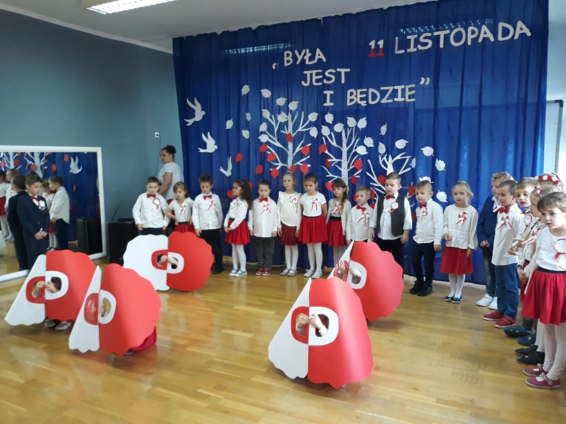 Z tej okazji przedszkolaki przyszły ubrane na galowo i uroczyście świętowały ten wyjątkowy dla Polski dzień.