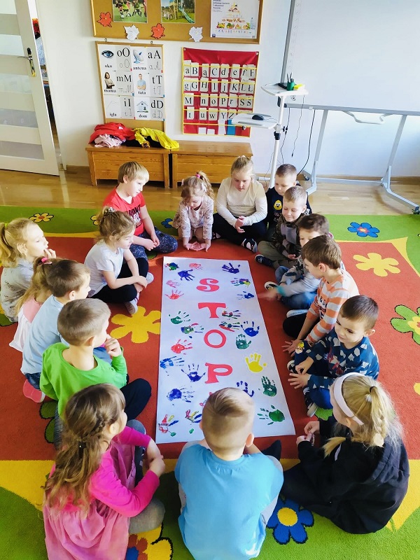 Od wielu lat nasze przedszkole aktywnie włącza się w ogólnoświatową kampanię „19 dni przeciwko przemocy i krzywdzeniu dzieci i młodzieży” którą koordynuje genewska organizacja zajmująca się prawami dzieci i kobiet jest ona rozpowszechniona na całym świecie. To już IX edycja tej wyjątkowej i ważnej akcji, w ramach której podjęto wiele działań o charakterze edukacyjnym, by pokazać i uczyć najmłodszych, czym jest przemoc, w jaki sposób ją powstrzymywać i jak na przemoc reagować.