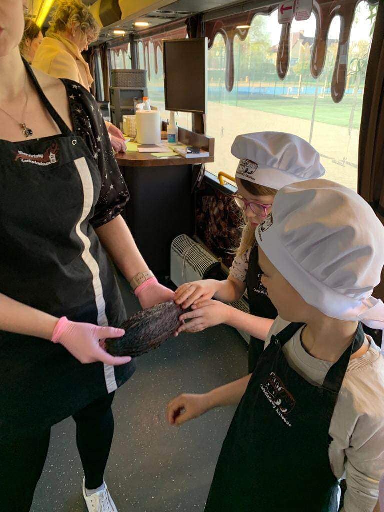 Czekoladowe warsztaty - edukacja poprzez zabawę! Podczas spotkania w Czekoladowym Autobusie dzieci poznały historię czekolady, techniki jej przygotowania oraz możliwości wykorzystania. Dowiedziały się również jak odróżnić czekoladę od produktów czekoladopodobnych oraz kiedy i w jakich ilościach można pozwolić sobie na słodycze.