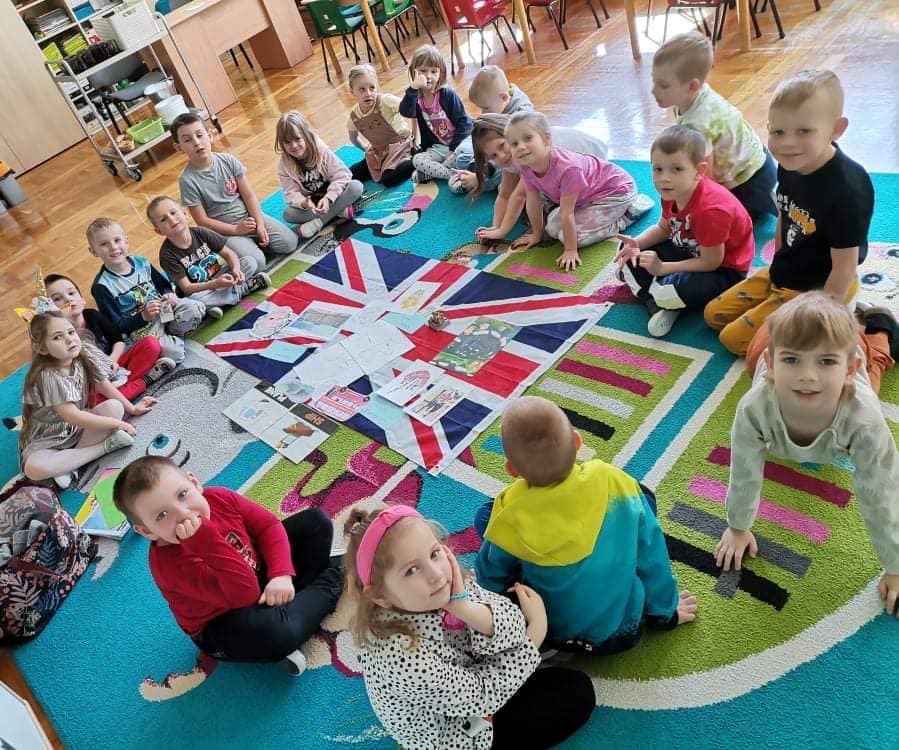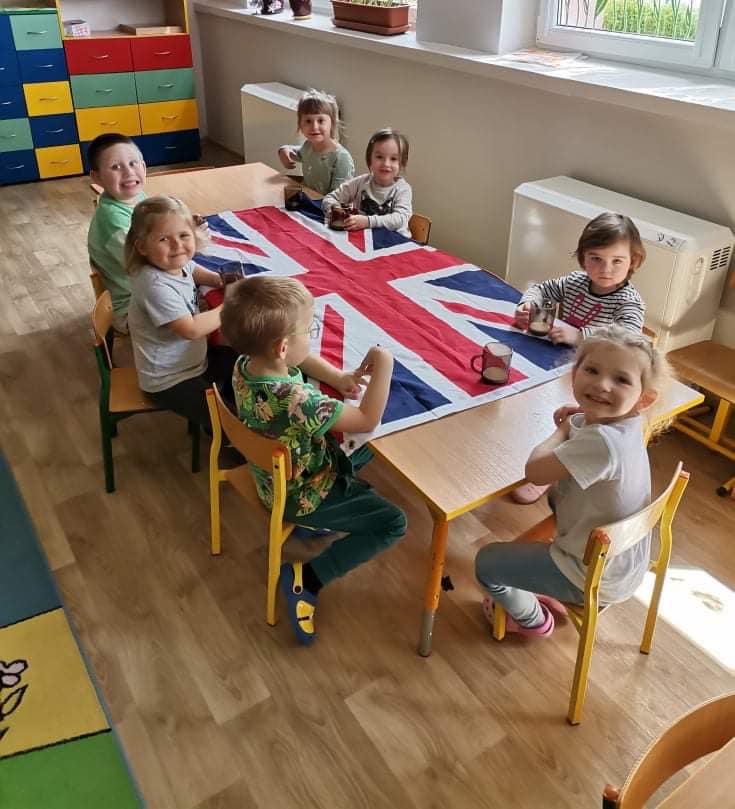 Dzieci z naszego przedszkola odbyły cykl zajęć, których celem było zapoznanie z symbolami i kulturą Wielkiej Brytanii. Najpierw nasze dzielne przedszkolaki wybrały się w podróż samolotem do Londynu. Po "zwiedzaniu" pełnym interesujących treści, miały okazję skosztować brytyjskiej "cream tea". Następnie strzeglismy pałacu wraz z gwardzistami i ćwiczyliśmy ukłony dla Royal Family