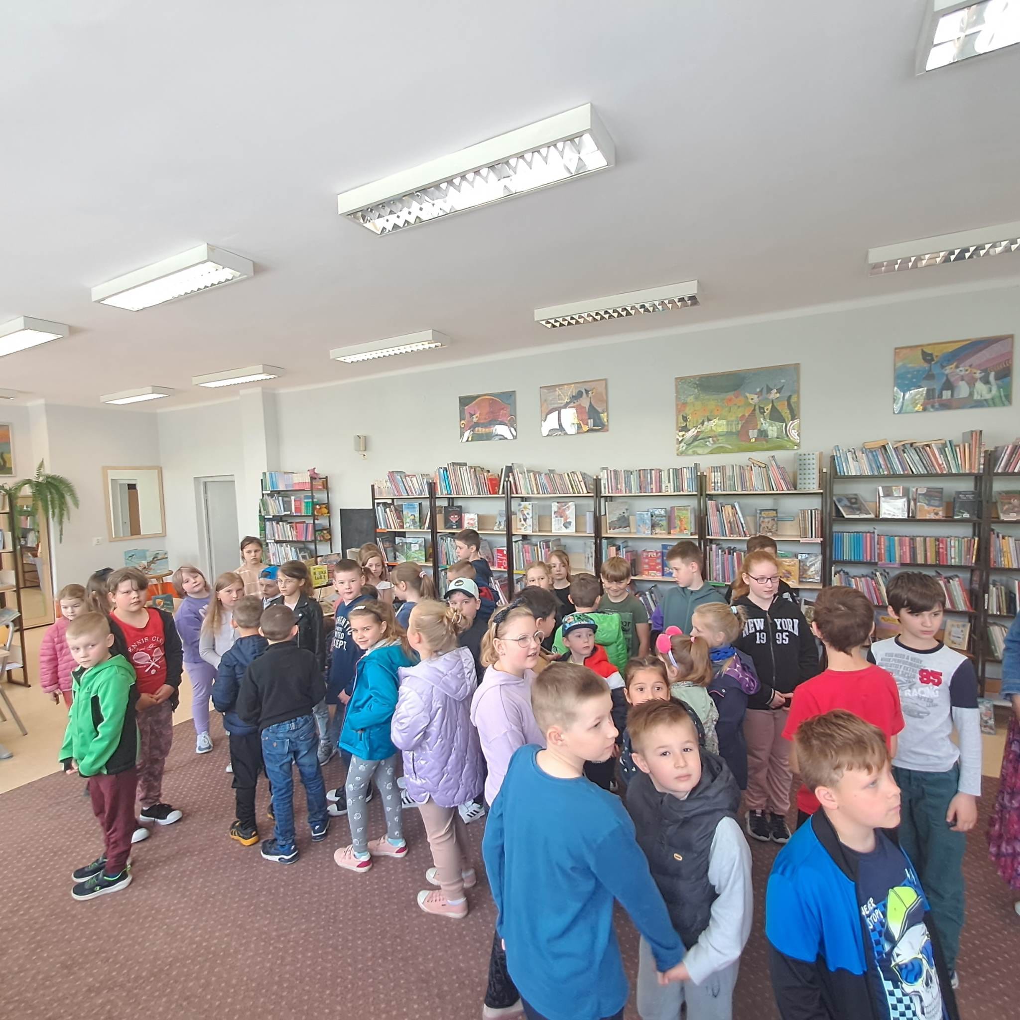 Wycieczka Skrzatów do Szkoły Podstawowej Nr 3. Uczestniczenie w zajeciach dydaktycznych oraz zwiedzanie pomieszczeń szkolnych. Przedszkolaki zwiedziły: bibliotekę, sale eksperymentów, stołówkę, sale gimnastyczną, świetlicę oraz szatnię.