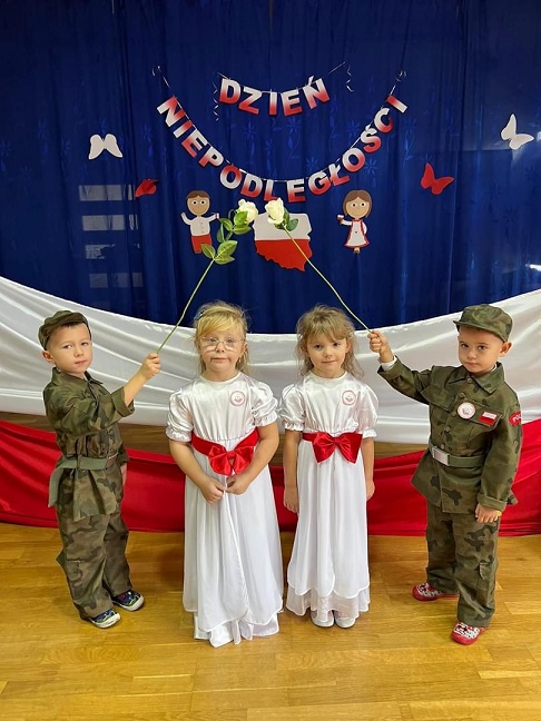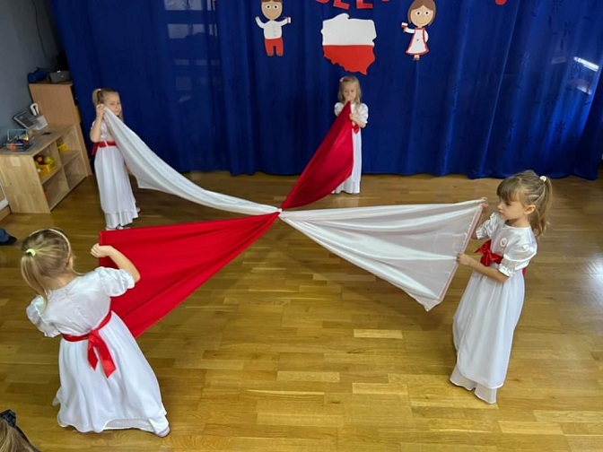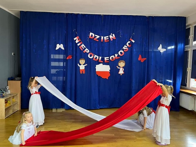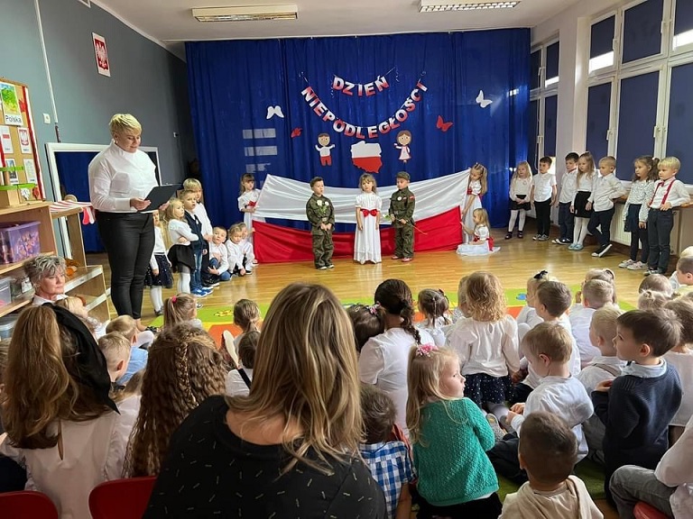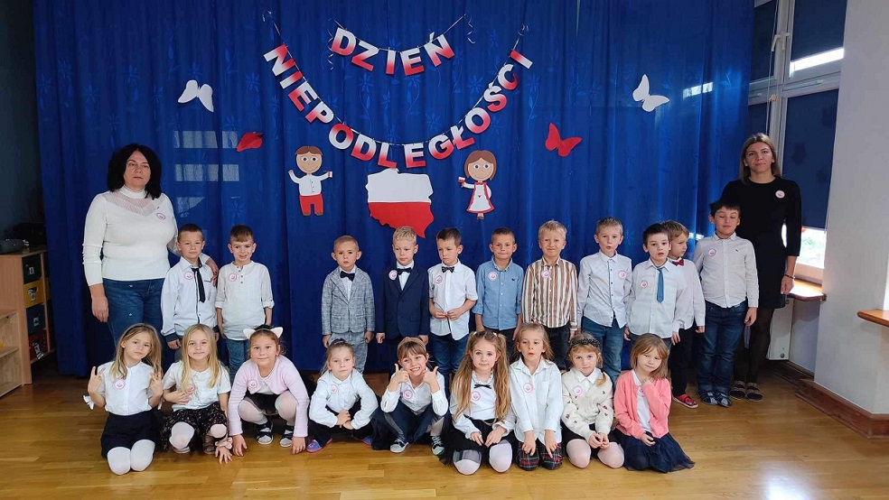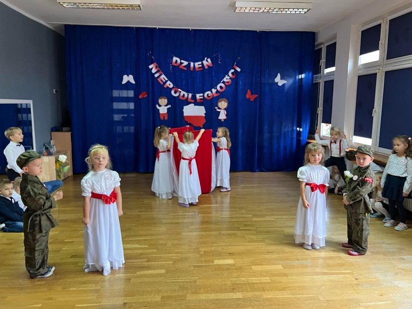 W naszym przedszkolu świętowaliśmy Narodowe Święto Niepodległości. To wyjątkowy czas dla każdej Polki i Polaka. Z tej okazji dzieci z wszystkich grup oraz pracownicy przedszkola zebrali się, aby uroczyście świętować ten wyjątkowy dla Polaków czas. Grupa "Biedronek" przedstawiła improwizaję muzyczno - taneczą "Rozkwitały pąki białych róż", a grupa "Skrzatów" upiększyła ten dzień patriotycznymi piosenkami. Po występie artystycznym nastąpiło wspólne śpiewanie hymnu narodowego w ramach ogólnopolskiej akcji „Szkoła do hymnu”.