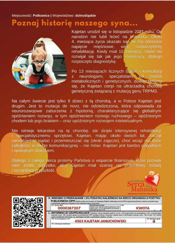 W dniach 18-19.04.2024r. (czwartek - piątek) odbędzie się sprzedaż ciast i ciasteczek (za wrzut do puszki). Dochód ze sprzedaży zostanie przeznaczony na rehabilitację Kajetana - braciszka jednego z naszych wychowanków.