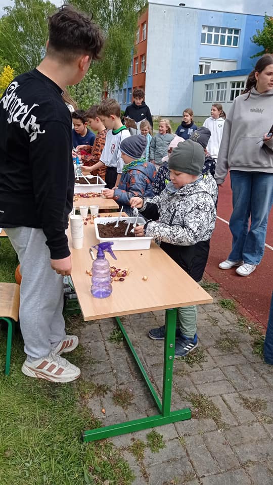 W ramach obchodów "Dnia Ziemi" grupa Skrzaty wzięła udział w EKOBIEGU DLA KLIMAT, który został zorganizowany przez Szkołę Podstawowa nr 3 w Polkowicach. Uczestnicy poruczali się na terenie placu szkolnego i rozwiązywali zadania dotyczące Ekologii. Po wykonaniu wszystkich konkurencji wspólnie z kolegami i koleżankami ze starszych klas sadzili w pojemnikach cebulki, które zabrali do domu.
