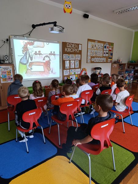 Dzień Kropki jest to dzień odwagi i zabawy. Tego dnia nasze "Biedronki" wypełnione były kolorowymi kropkami. Na zajęciach poznały genezę tego święta. Dzieci uważnie wysłuchały opowiadania, jak to zwyczajna kropka zmieniła świat małej dziewczynki o imieniu Vashti. Historia ta uświadomiła przedszkolakom, że każdy z nas ma jakieś ukryte zdolności, TALENT.Tego dnia również dostrzegaliśmy kropki tam, gdzie wcześniej nikt na nie nie zwracał uwagi. Okazało się, że kropki towarzyszą nam w naszym codziennym życiu.