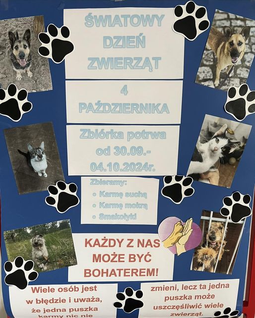 Serdecznie zachęcamy do wzięcia udziału w organizowanej przez nasze przedszkole zbiórce karmy dla psów i kotów przebywających w Miejskie Schronisko dla Bezdomnych Zwierząt w Głogowie