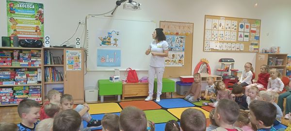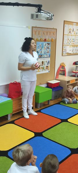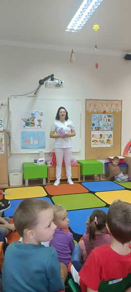W związku z Międzynarodowym Dniem Lekarza zaprosiliśmy do naszego przedszkola panią stomatolog Kamilę Samulską - Łażewską. Pani Kamila opowiedziała dzieciom o zawodzie dentysty. Mamy nadzieję, że od tej pory już nikt z przedszkolaków nie będzie bał się wizyty u stomatologa. Dziękujemy naszemu gościowi za wizytę w naszym przedszkolu i poświęcony nam czas.![]()
