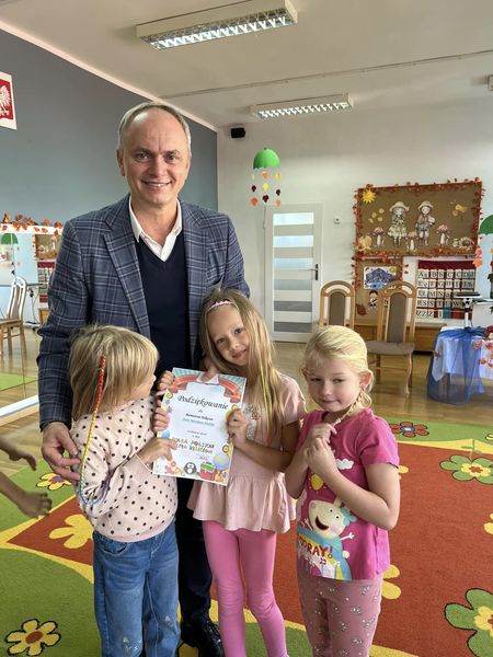 gościliśmy w naszym przedszkolu Pana Burmistrza Wiesława Wabika i Dyrektor wydziału Zdrowia, Oświaty, Kultury i Spraw Panią Mariolę Perz. Podczas spotkania dzieci wysłuchały opowiadania pt. ,, Mój przyjaciel pies”