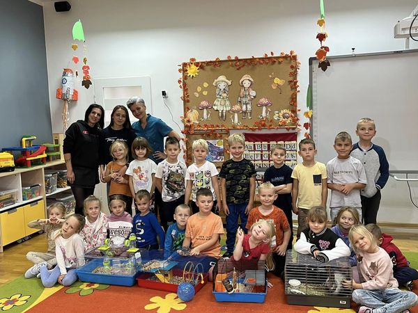 W nawiązaniu do tygodniowej tematyki cyklicznej ,,Nasze pupile” dzieci z grupy Skrzaty wraz z rodzicami mogli przyprowadzać do przedszkola swoje zwierzątka domowe. Dzieci z uwagą słuchały ciekawostek o zwierzętach, zdobyły wiedzę na temat ich wyglądu, zwyczajów oraz ulubionych zabaw.