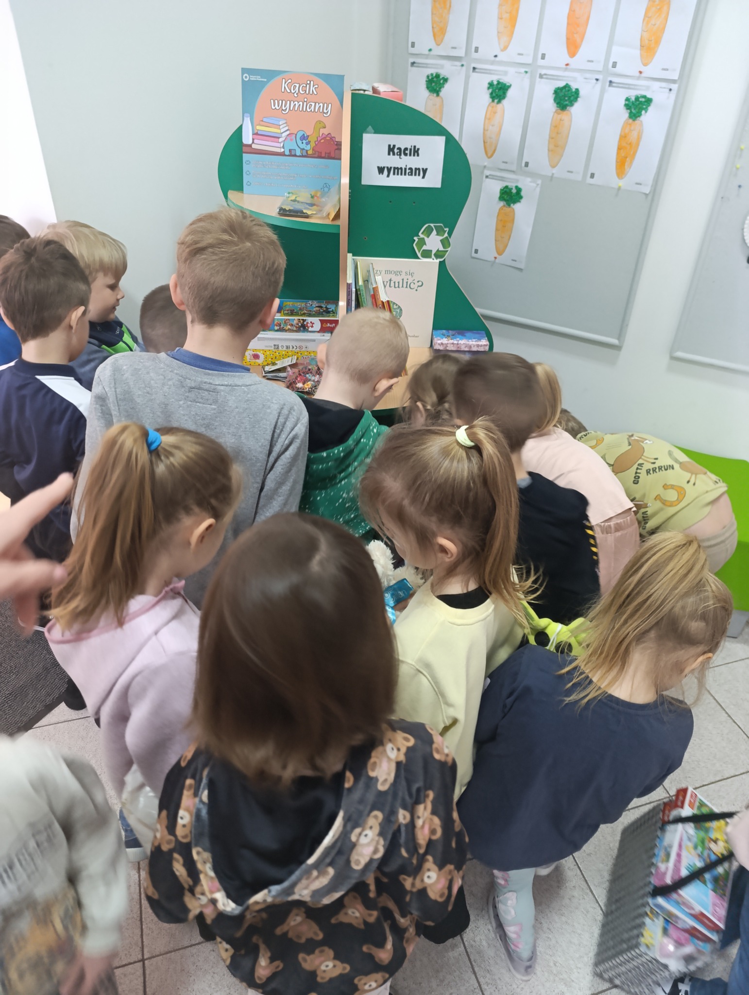 W efekcie tego w naszej placówce powstał Kącik Wymiany, który będzie miejscem, gdzie dzieci mogą wymieniać się zabawkami, książkami i innymi przedmiotami.