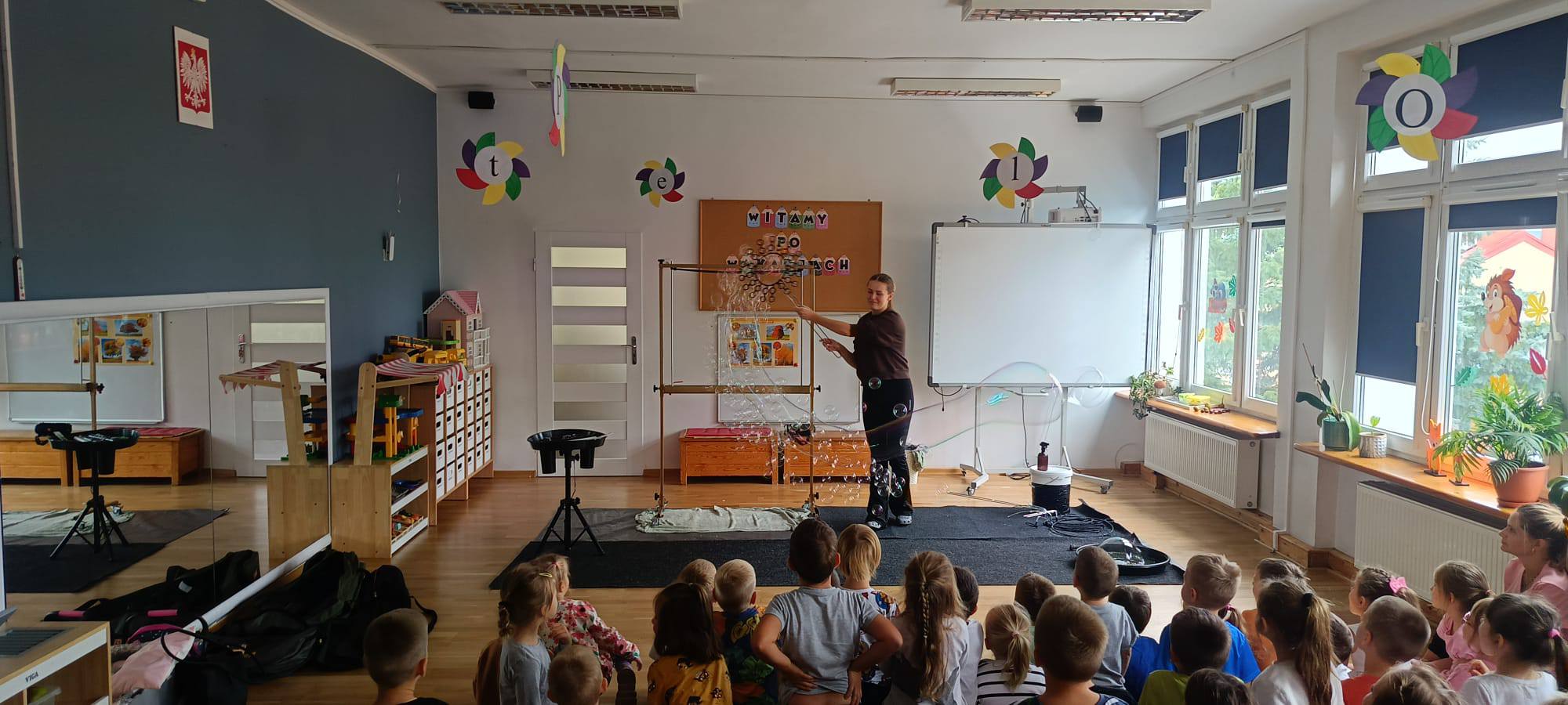 Bański mydlane lecą do góry, tańczą w powietrzu jak lekkie chmury. W przedszkolu dzieci klaskały wesoło, bo na warsztatach o nich było ciekawie i kolorowo. Dziś nasze kochane przedszkolaki wzięły udział w pokazie baniek mydlanych ![]()