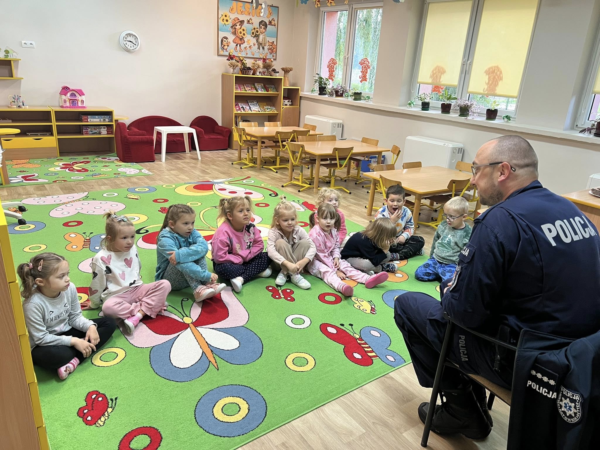 W Oddziale Przedszkolnym w Tarnówku w ramach programu edukacyjnego „Bezpieczną drogą do przedszkola” odbyły się zajęcia z udziałem dzielnicowego Radosława Konarskiego z Komendy Powiatowej Policja Polkowice.