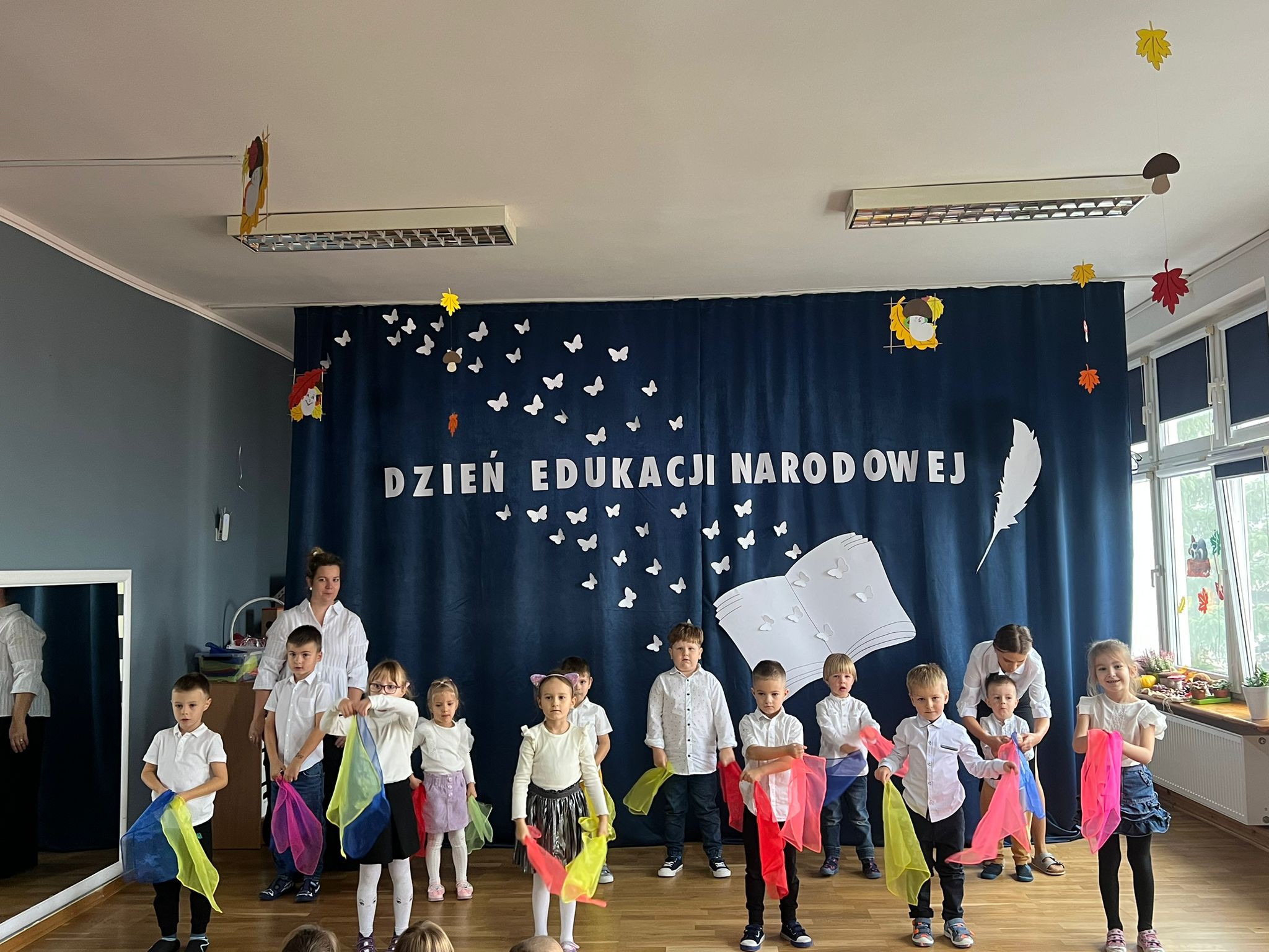 W naszym przedszkolu odbyła się uroczysta akademia z okazji Dnia Edukacji Narodowej – święta wszystkich nauczycieli, wychowawców oraz pracowników oświaty. To wyjątkowy dzień, w którym dzieci mogą wyrazić swoją wdzięczność za trud, cierpliwość i serce wkładane w codzienną pracę z najmłodszymi. Uroczystość rozpoczęła się od krótkiego wystąpienia Pani Dyrektor, która złożyła serdeczne życzenia wszystkim pracownikom przedszkola, dziękując za ich zaangażowanie, troskę i uśmiech, który towarzyszy dzieciom każdego dnia. Następnie na scenie pojawiły się przedszkolaki. W pięknych, odświętnych strojach zaprezentowały przygotowany z wychowawcami program artystyczny. Były wiersze, piosenki i tańce – wszystko poświęcone nauczycielom i pracownikom przedszkola. Po występach nie zabrakło również symbolicznych upominków –wręczonych przez dzieci były pięknym gestem wdzięczności. Cała uroczystość przebiegła w bardzo ciepłej i radosnej atmosferze. Był to dzień pełen serdeczności, uśmiechów i wzajemnych życzeń. Takie chwile przypominają nam, jak ważna i piękna jest praca nauczyciela, a także jak wiele znaczą relacje budowane każdego dnia w przedszkolu.