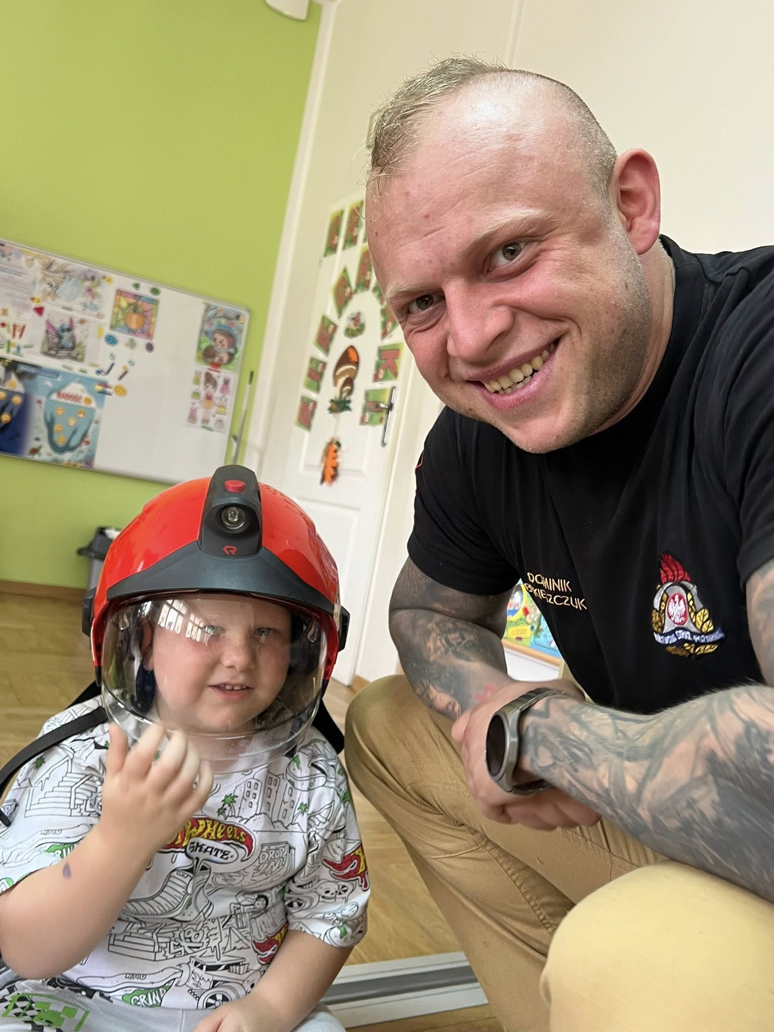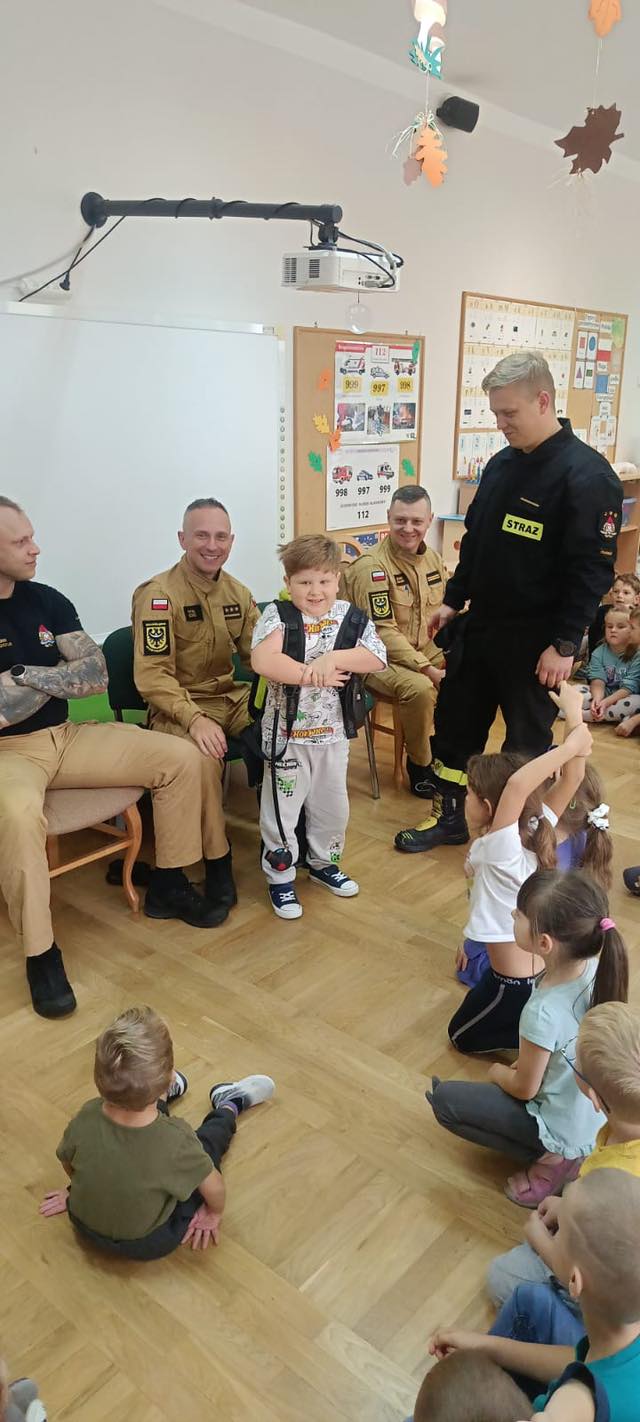 Dziś w naszym przedszkolu gościli niezwykli bohaterowie — strażacy z Komenda Powiatowa Państwowej Straży Pożarnej w Polkowicach.