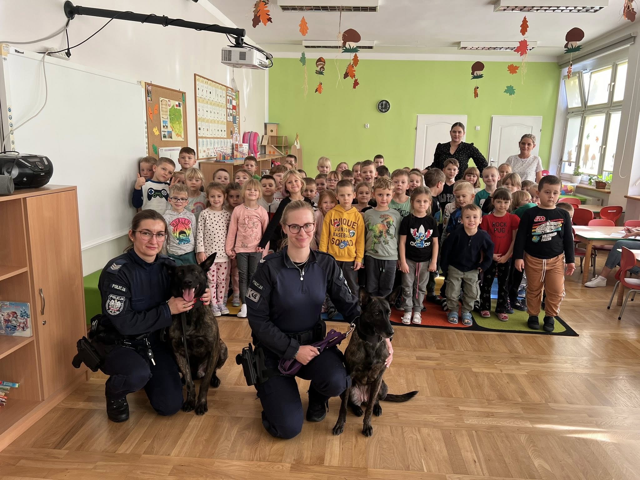 Dzieci miały okazję zobaczyć pokaz pracy policjanta i jego czworonożnych partnerów, poznać zasady bezpieczeństwa oraz dowiedzieć się, jak wygląda codzienna służba w policji. ![]()