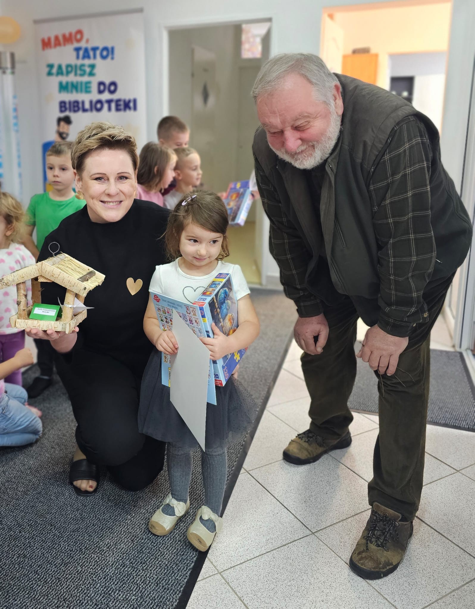 . Po zakończonym konkursie nasz gość specjalny Piotr Cybulski przewodniczący Rady Miejskiej w Polkowicach, pasjonat i miłośnik lasów, były nadleśniczy Nadleśnictwa w Lubinie udzielił przedszkolakom wskazówek i rad jak należy dokarmiać zwierzęta zimą. Dziękujemy za przemiłe spotkanie ![]()