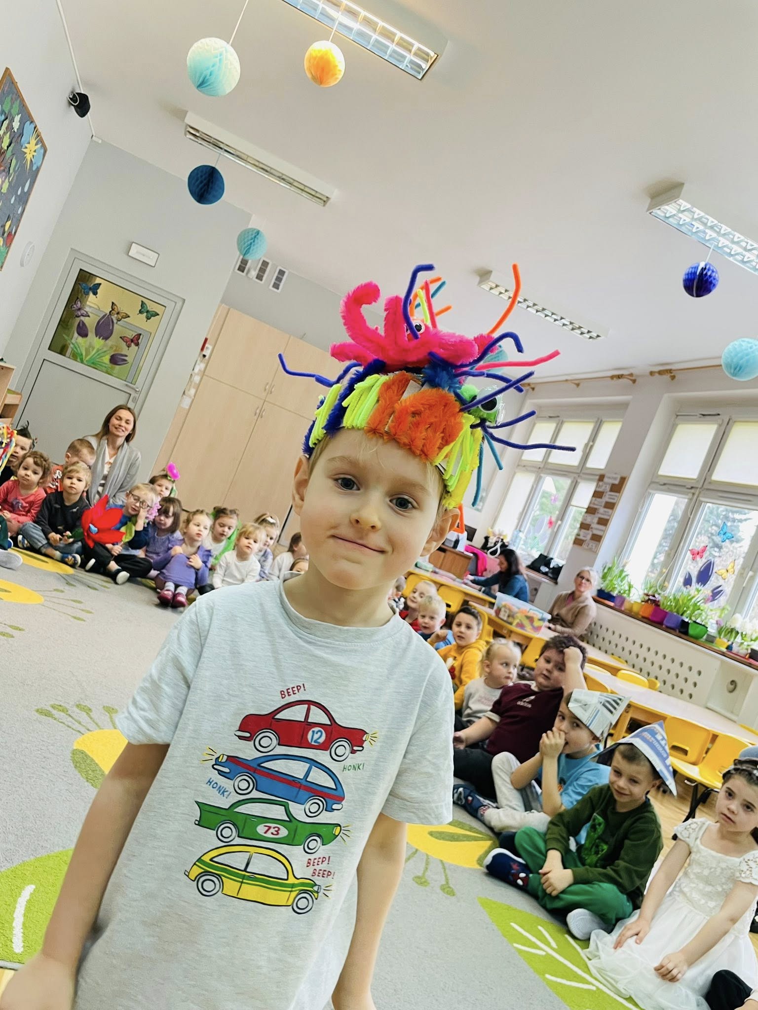 Po powrocie do przedszkola czekała na nas kolejna atrakcja – wyjątkowy pokaz eko-fryzur. Kreatywność dzieci nie miała granic! Powstały niezwykłe stylizacje inspirowane naturą i troską o środowisko.