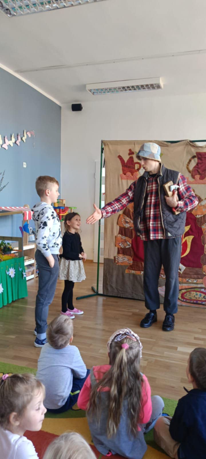 W ramach programu profilaktycznego skierowanego na przeciwdziałanie alkoholizmowi dzieci z naszego przedszkola obejrzały przedstawienie teatralne pt. Tajemnicza Skrzynia w wykonaniu aktorów teatru Blaszany Bębenek. Spektakl poruszył kwestię wielu zagrożeń czyhających na dzieci w ówczesnym życiu, min. niedozwolone używki, które zażywają coraz młodsze dzieci, a także, jak się zachować, kiedy się już pojawią. Przewijał się również wątek zalet współpracy, szacunku i uczciwości we wzajemnych relacjach, szczególnie w trudnych, życiowych sytuacjach